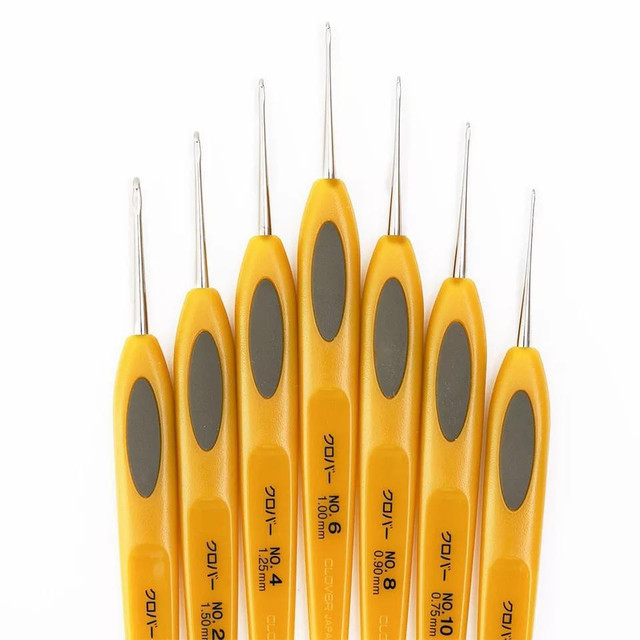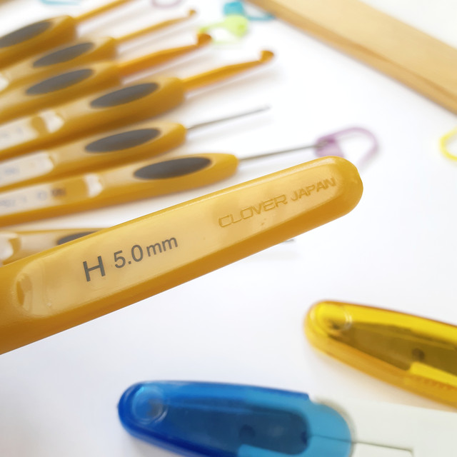 - Маркування розмірів може бути на різних мовах, але завжди буде розмір гачка мм + напис барельєфом CLOVER Japan