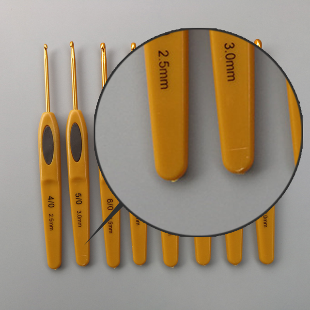 - Матеріали: маленькі розміри до 2 мм оснащені сталевим міцним гачком без напилення, з 2 мм до 6 мм - алюмінієвий гачок з покриттям Soft Touch (жовтого кольору)